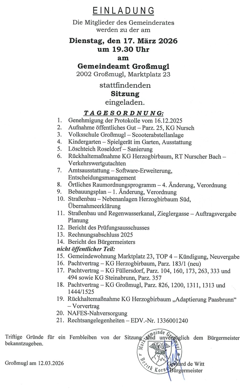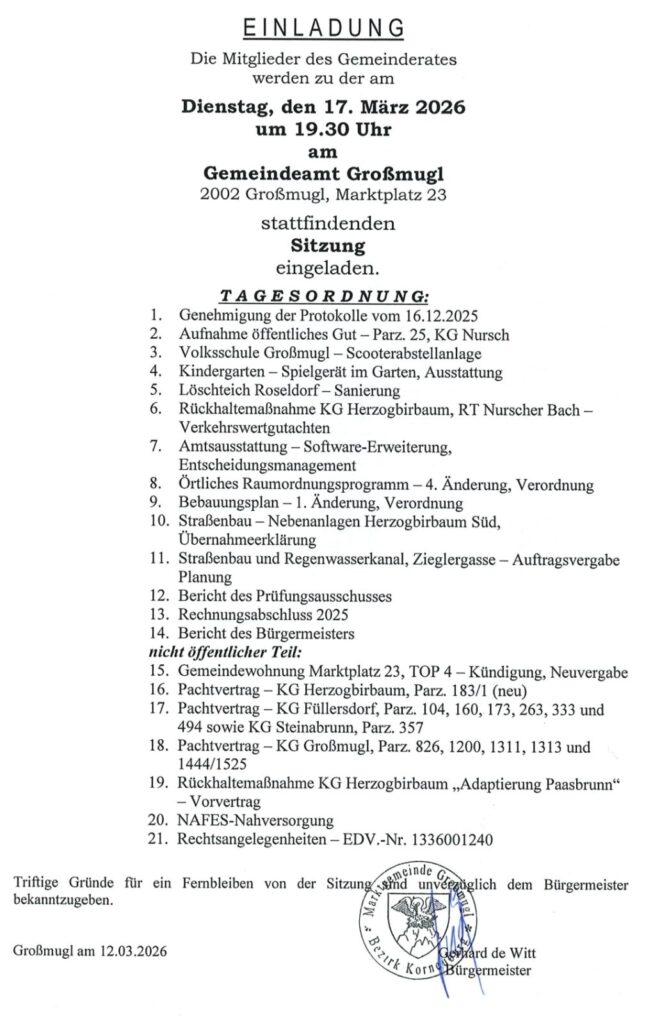 Anbei das Protokoll der Gemeinderatssitzung am 15. Dezember 2025 zum Herunterladen: